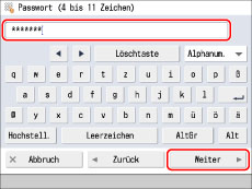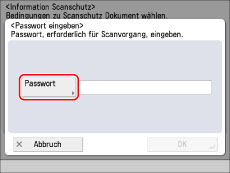 Berühren Sie die Taste [Passwort] → Geben Sie das Passwort ein → Bestätigen Sie durch Berühren der Taste [OK].