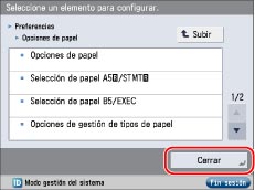 Cuando acabe de especificar las opciones, pulse [Fin sesión] en la parte inferior derecha de la pantalla para cerrar sesión.