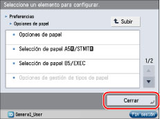 Cuando acabe de especificar las opciones, pulse [Fin sesión] en la parte inferior derecha de la pantalla para cerrar sesión.