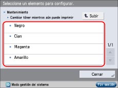 [Ajuste/Mantenimiento] → [Mantenimiento] → [Cambiar tóner mientras aún puede imprimir].