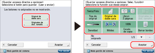 Pulse un botón de acceso directo → seleccione la opción que se guardará en el botón→ pulse [Aceptar].
