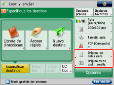 Puede guardar las teclas de acceso directo que se muestran en la pantalla Enviar. Puede guardar un máximo de dos botones desde [Opciones].