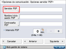 En <Intervalo POP>, especifique el intervalo de tiempo en el que desea comprobar automáticamente el servidor POP → pulse [Siguiente].
