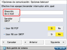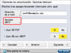 Pulse [Sí] para <Usar RX POP> → [No] para <Usar RX con SMTP> → [Siguiente].