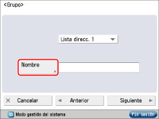 La función Dirección de grupo le permite crear un grupo. Puede guardar distintos tipos de destinos (como destinos de e-mail, I-fax o servidor de archivos) en un solo grupo.