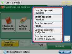 Para más información acerca de cómo guardar teclas de acceso directo para las Opciones y Opciones favoritas, consulte lo siguiente: