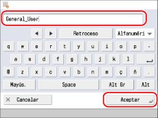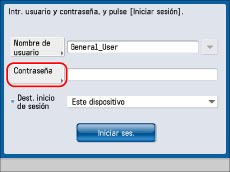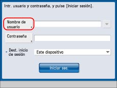 Para más información acerca del nombre de usuario utilizado para el sistema de autenticación de usuarios 'Autenticación de servidor' de SSO-H (incluido cuando se realiza la autenticación de servidor con el sistema de autenticación de usuarios 'Autenticación de servidor + Autenticación de dispositivo local'), consulte al administrador de red (NetworkAdmin).