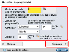 Si no ha finalizado la entrega programada del firmware o no se ha instalado el firmware descargado, no se puede realizar una actualización programada.