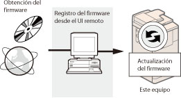 Puede actualizar el firmware del equipo a la versión más reciente con la función "Registrar/Actualizar software" de la IU remota.