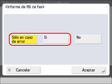 Se puede imprimir un informe de RX de fax automáticamente después de que se reciban los documentos y también se puede configurar el equipo para que imprima un informe de RX de fax sólo si se produce un error de recepción.