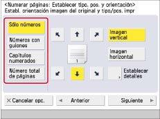 Pulse [Opciones] → [Numerar páginas].