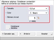 Especifique las opciones de impresión de los números de páginas.