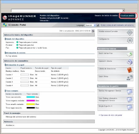 Cuando termine la operación, pulse [Finalizar sesión] para cerrar la sesión.