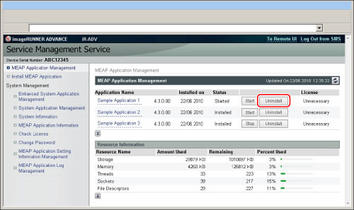 Si para el estado de una licencia de aplicación aparece <Not Installed>, se puede desinstalar la aplicación. Si para el estado de la licencia de aplicación aparece un mensaje distinto de <Not Installed>, se puede desinstalar la aplicación después de haber desactivado y eliminado el archivo de licencia. (Consulte "Gestionar las licencias de las aplicaciones".)