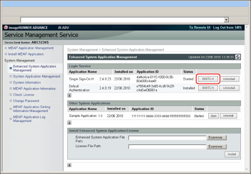 Para usar Local Device Authentication y Gestión de ID de departamentos al mismo tiempo, actualice los datos de usuario (ID de departamento y el PIN correspondiente) de Local Device Authentication y active [Gestión de ID de departamentos] después de cambiar el servicio de inicio de sesión a SSO-H.