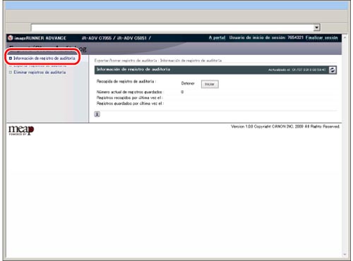 Tenga en cuenta que Canon no se responsabiliza por los daños que pudieran causar el uso de la gestión del registro de auditoría ni la imposibilidad de su utilización.