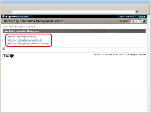 Haga clic en [Select User Setting Information to Delete].