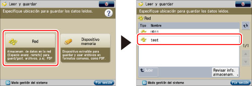 Pulse [Red] → seleccione la ubicación de almacenamiento que desee.