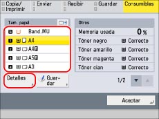 Para conocer las instrucciones acerca de cómo especificar [Opciones de papel], consulte"Guardar el tamaño y el tipo de papel para el origen del papel".