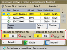 Si se desactiva <Bloqueo de memoria de fax> y/o <Bloqueo de memoria I-fax>, los archivos recibidos mediante la función de fax/I-fax se imprimen automáticamente y se eliminan del buzón de recepción en memoria.