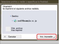 Si desea que el archivo seleccionado se elimine automáticamente después de imprimirlo, pulse [Elim. archivo tras imprimir].