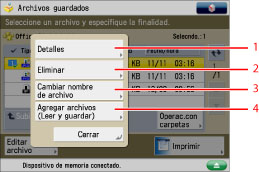 Para ver el procedimiento acerca de [Agregar archivos (Leer y guardar)] y conocer las instrucciones acerca del manejo de la pantalla de lectura, consulte "Agregar un archivo (Leer y guardar)" y "Flujo de operaciones de leer y guardar".
