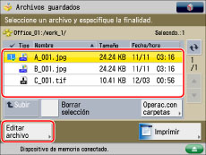 Seleccione el archivo que desee → pulse [Editar archivo].