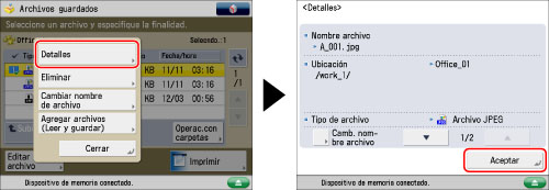Puede consultar la información detallada de archivos (nombre de carpeta, ubicación, fecha de modificación, etc.) y añadir o eliminar archivos guardados en la red.