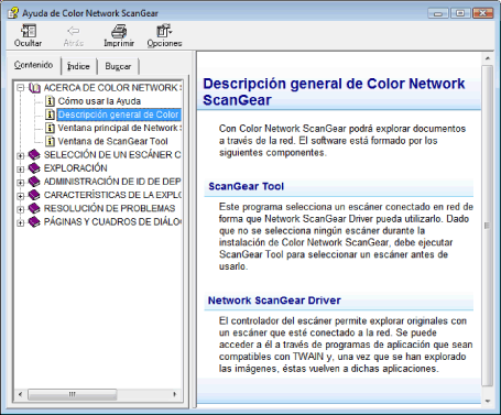 Visualización de la ayuda en pantalla de Color Network ScanGear/Network ScanGear