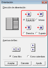 Seleccione la orientación de los originales que se deben cargar en el alimentador en [Dirección de alimentación].