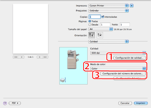 ] a la derecha de [Impresora] para mostrar todos los ajustes del cuadro de diálogo [Imprimir]. |