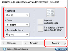Establezca el patrón de fondo, el tamaño y el color del texto → pulse [Aceptar].