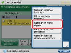 de la parte superior derecha de la pantalla → [Guardar en menú rápido].