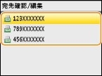 / を押すと、宛先が順次表示されますので を押すと、そのとき表示されている相手先を宛先から外すことができます。 |