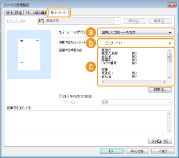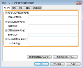 送信原稿にカバーシートを付けることができます。カバーシートはすでに用意されている3つの中から選びますが、自分で作成したカバーシートを付けることもできます。詳細については、ファクスドライバー画面の[ヘルプ]をクリックしてください。