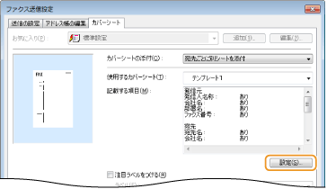 カバーシートに記載される項目が表示されます。内容を変更する場合は、[設定]をクリックします。