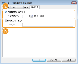 カバーシートに送信枚数を記載したい場合はチェックマークを付け、送信枚数を[送信枚数]に入力します。送信枚数は自動で計算されません。ここで入力した値がカバーシートに記載されます。