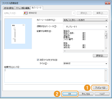 [プレビュー]をクリックして作成したカバーシートの内容を確認し、問題がなければ[OK]をクリックする
