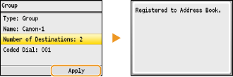Repeat steps 10 and 11 until you have registered all of the destinations that you want to register, and then press <Apply>.