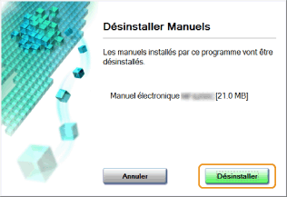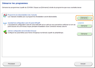 Cliquez sur [Démarrer] en regard de [Programme de désinstallation des manuels].