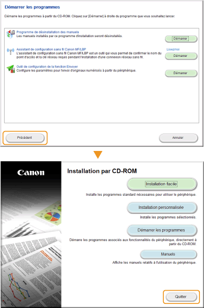 Si l'écran ci-dessus ne s'affiche pas, reportez-vous à la section