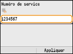 / pour sélectionner <Numéro de service> (ou <Code admin>). |