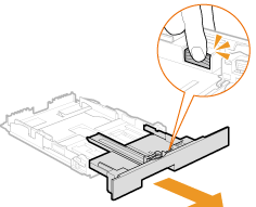Appuyez sur le levier de déverrouillage pour faire glisser les guides papier vers l'extérieur. Sur le modèle MF8280Cw / MF8230Cn, il n'existe pas de levier de déverrouillage pour les guides papier latéraux.