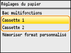 Sélectionnez <Cassette 1> ou <Cassette 2> et appuyez sur