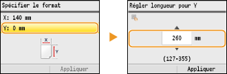 .Saisissez la longueur de la dimension <Y> et appuyez sur <Appliquer>.