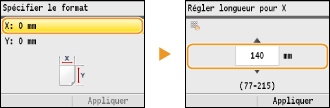 .Saisissez la longueur de la dimension <Y> et appuyez sur <Appliquer>.