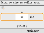 Définissez la durée qui s'écoule avant que l'appareil ne bascule en mode de veille