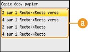 Vous pouvez utiliser <2 sur 1>/<4 sur 1> pour copier plusieurs documents sur une seule feuille et <Recto verso> pour copier le document sur les deux côtés d'une feuille.