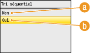 Lorsque vous envisagez de réaliser plusieurs copies d'un document de plusieurs pages, réglez <Tri séquentiel> sur <Oui> pour trier les copies dans l'ordre des pages. Ce mode est très utile pour préparer des documents à distribuer pour les réunions ou présentations.