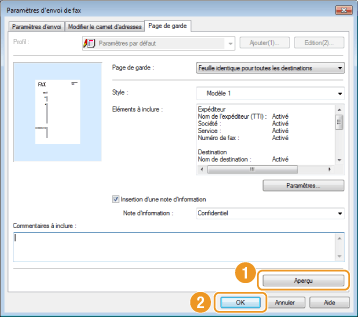 Cliquez sur [Aperçu] pour contrôler le contenu de la page de garde et, si tout vous parait correct, cliquez sur [OK].